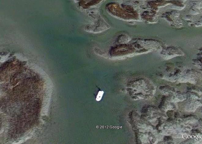 Fly Fishing in Hilton Head Island, caught by satellites. Love this shot of our skiff on Google Earth that my friends dad found while looking at one of our honey holes. You can see the shadow of my guest on the bow and me poling from the stern. Gets me pumped!